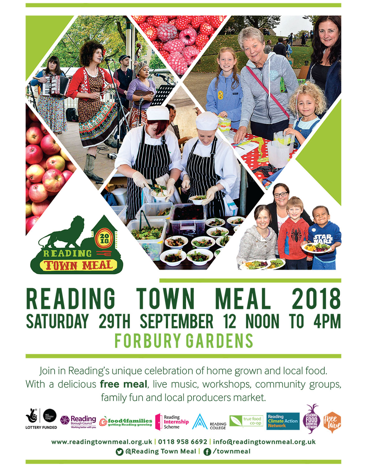 Alongside the delicious free veggie food that will be distributed, cooked by Reading College catering students and made from donated veggies from local allotment holders and home growers. There will be lots of interesting workshops, stalls, live music and yes, us, to come and chat to and share your eco waste and energy tips that we’ll be harvesting for Reading.