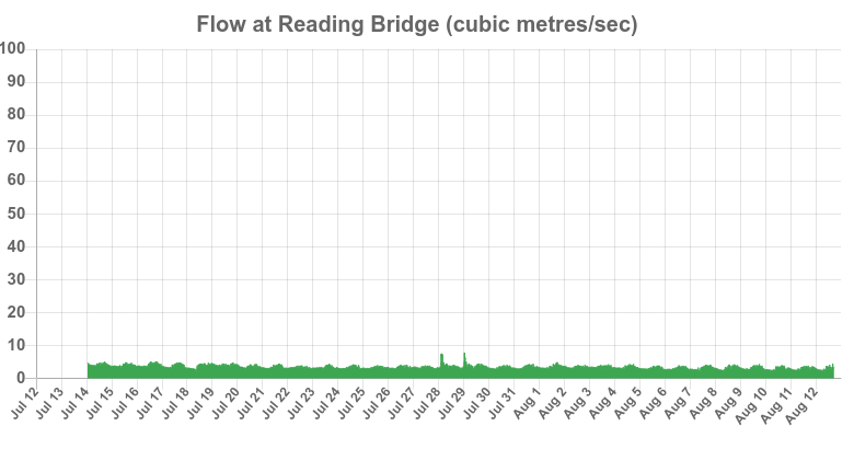 You will have noticed if you regularly walk past our turbines that they haven’t been turning for quite some time If you look at the power generation page on our website you will see that Reading Hydro hasn’t generated any electricity since 1st July. You can also see from the river conditions data on our website that the Environment Agency river flow sensor at Reading Bridge currently reads just over 3 cubic metres per second (m3/s). This is less than 10% of the average river flow. At this very low flow rate, the Environment Agency cannot allow Reading Hydro to use water to generate electricity, because they must prioritise providing water to the fish passes and the weir gates.